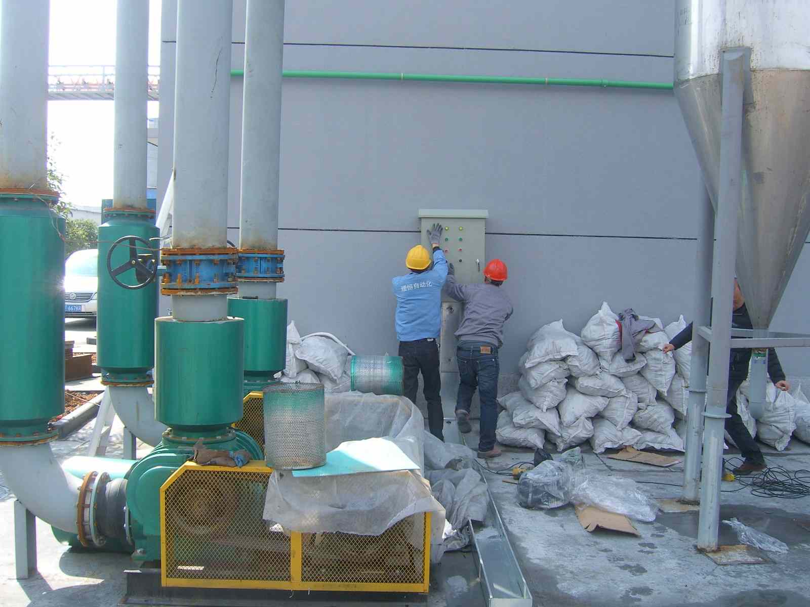 我公司施工人員為鼓風(fēng)機固定控制箱
