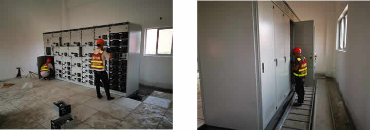 我司員工將電控柜運至酒廠(chǎng)配電房整齊就位
